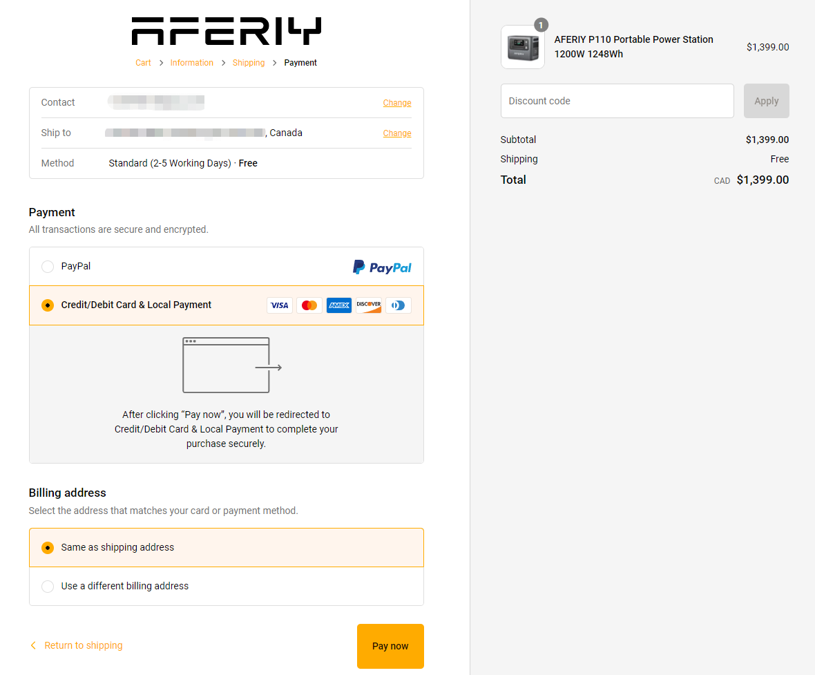 Thanks for your visiting AFERIY Canada official website.